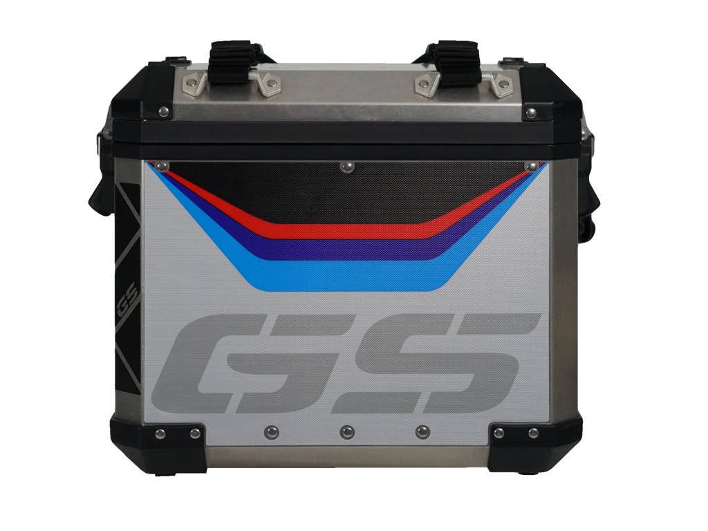 Sada samolepek na boční kufr Adventure, určený pro BMW R1200GS, s nápisem GS a pruhy v barvách BMW. Vylepší vzhled vašich kufrů a tím získáte jedinečný estetický doplněk, který váš motocykl odliší. Kromě estetického dojmu také pomohou kufr ochránit před škrábanci, odřeninami nebo slunečním svitem. Sada obsahuje samolepky pouze na jeden kufr.