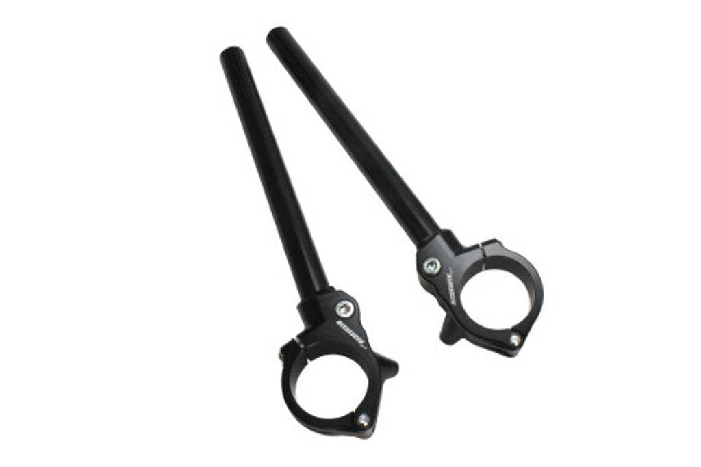 Adjustable Straight Clip-ons with 6° to 10 ° inclination, sold in pair. They are made in CNC-worked aluminium, with provision for steering damper, w