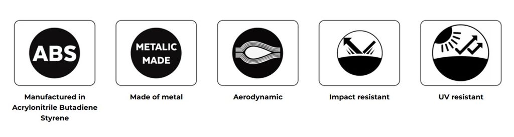 Sada se skládá ze dvou dílů z vysoce kvalitního 3mm ABS plastu, vyrobených pomocí nejmodernějších technologií vstřikování plastů, doplněných o ocelové podpěry zajišťující potřebnou tuhost, s nenápadným texturovaným černým povrchem, který se dokonale integruje do designu motocyklu.
