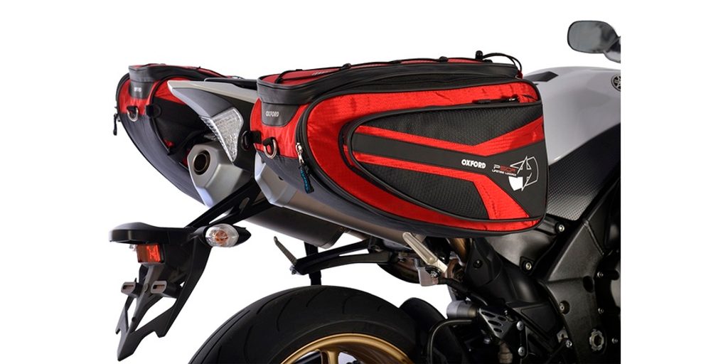bočné brašne na motocykel P50R, OXFORD (černé/červené, objem 50 l, pár)