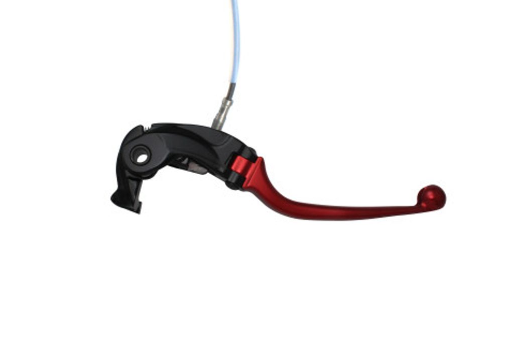 Folding brake lever with integrated adjuster, for Nissin radial master cylinders. It is made in aluminium, CNC worked and anodyzed in 7 different colu