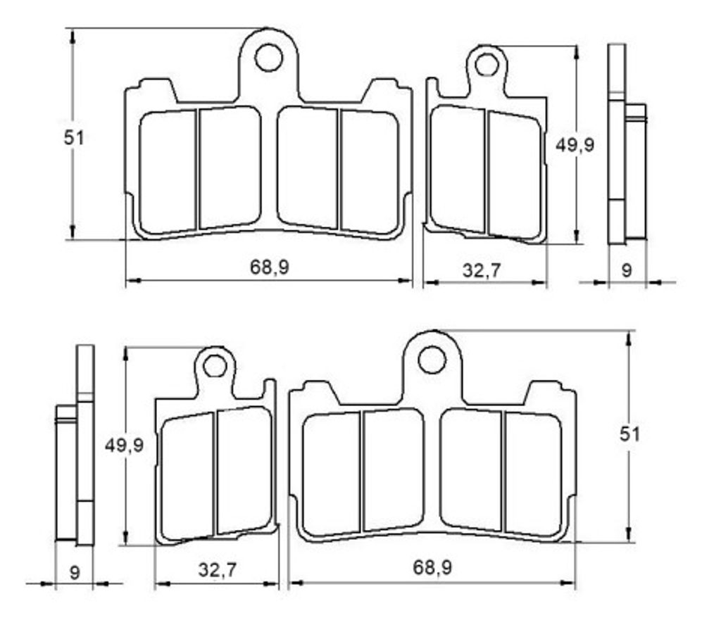 Accossato Brake Pad AGPA193 (dimensions 68.9x51x9 - 32.7x49.9x9). Brake pads kit available in EV1 compound for an excellent grip for a street and amat