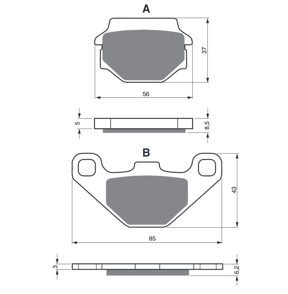 Sintrované brzdové destičky pro lehčí motocykly a běžné použití. Silniční typy mají homologaci TÜV.