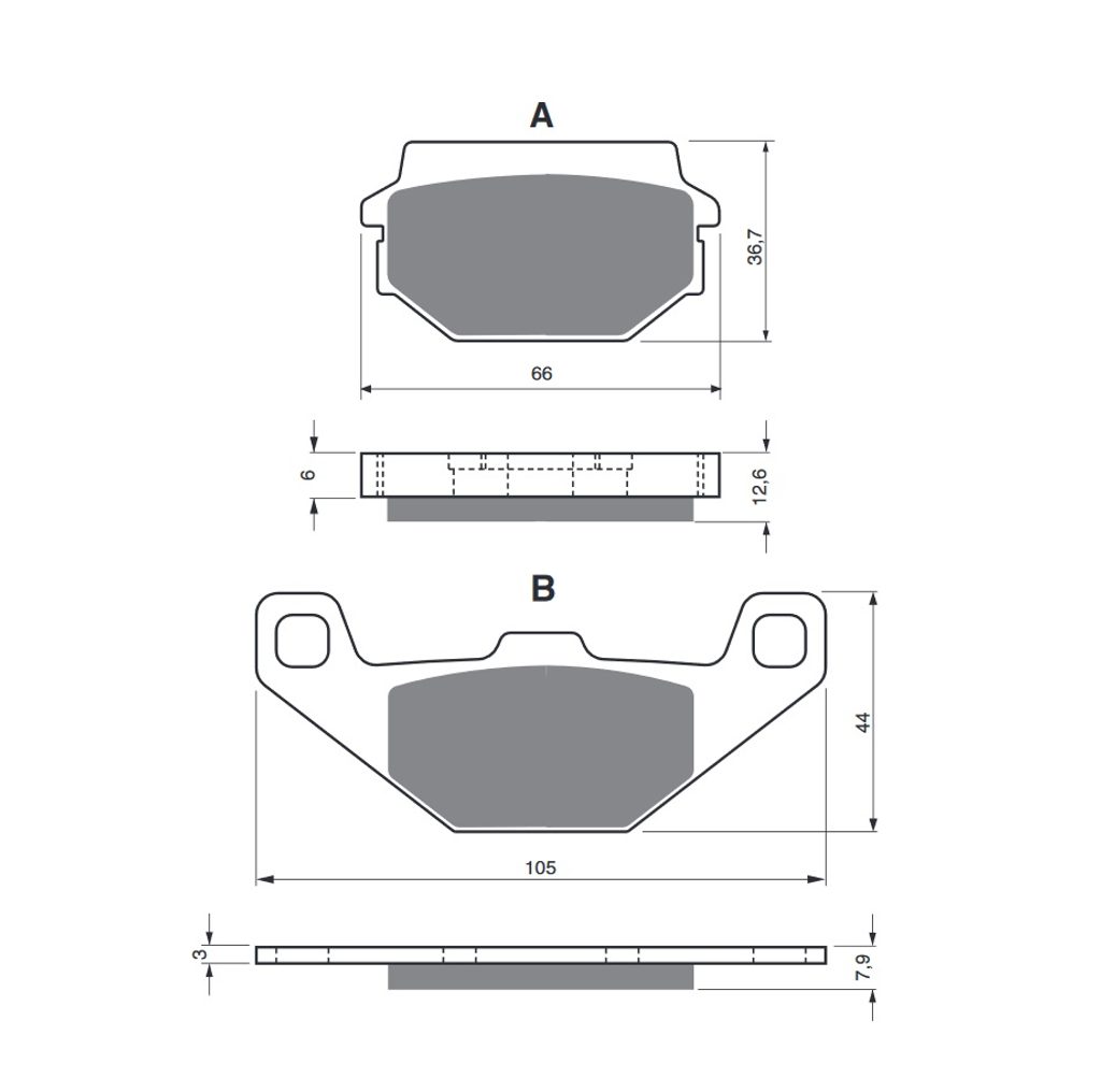 Sintrované brzdové destičky pro lehčí motocykly a běžné použití. Silniční typy mají homologaci TÜV.