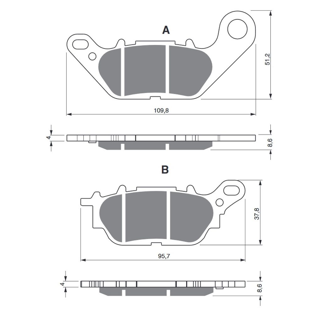 Sintrované brzdové destičky pro lehčí motocykly a běžné použití. Silniční typy mají homologaci TÜV.