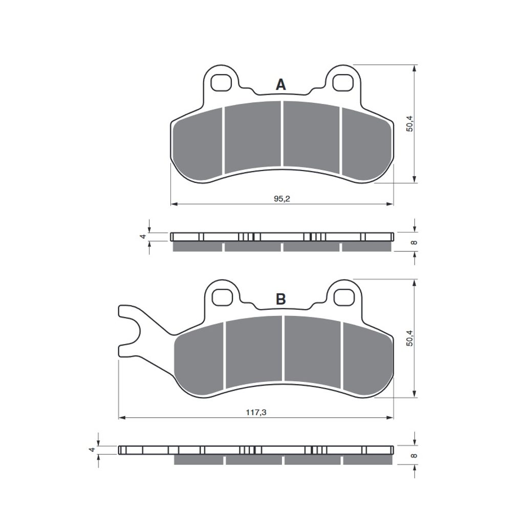 Sintrované brzdové destičky pro lehčí motocykly a běžné použití. Silniční typy mají homologaci TÜV.