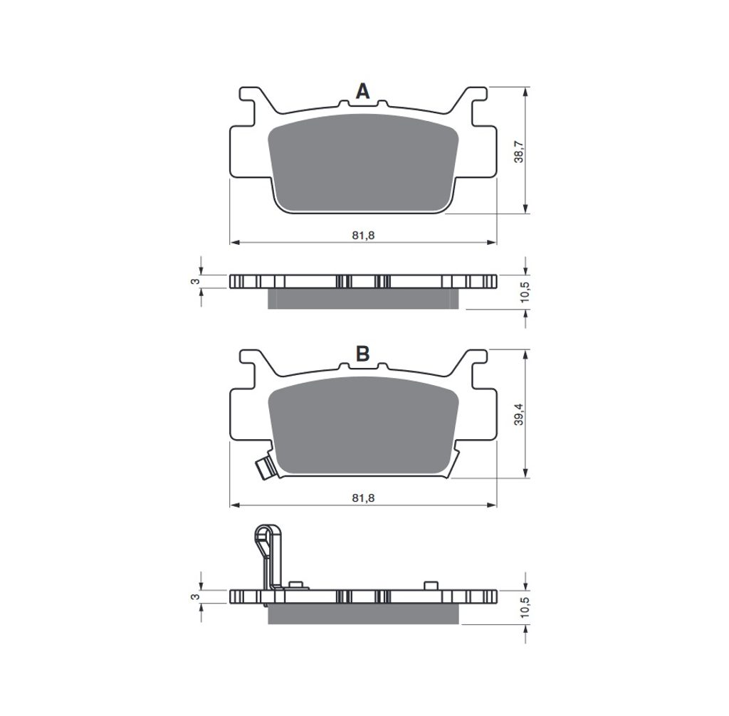 Sintrované brzdové destičky pro lehčí motocykly a běžné použití. Silniční typy mají homologaci TÜV.