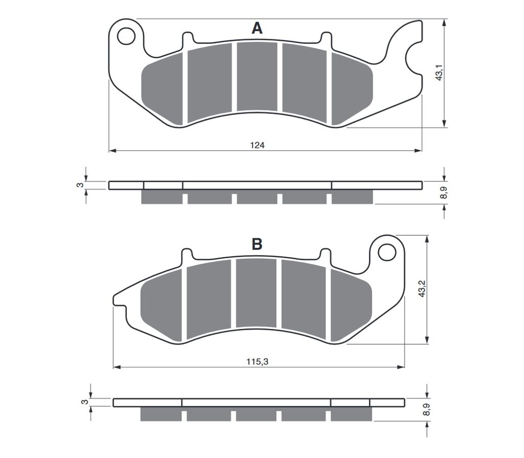 Sintrované brzdové destičky pro lehčí motocykly a běžné použití. Silniční typy mají homologaci TÜV.