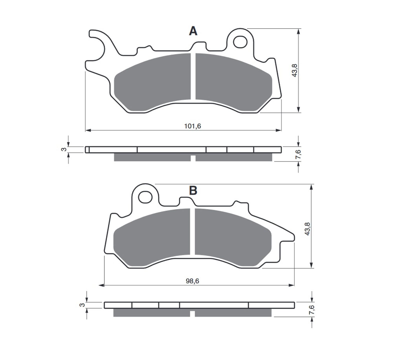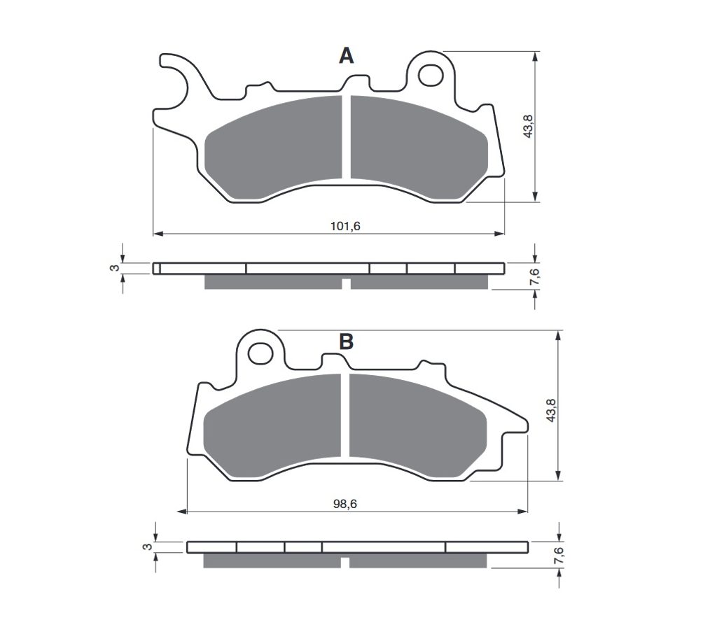 Sintrované brzdové destičky pro lehčí motocykly a běžné použití. Silniční typy mají homologaci TÜV.