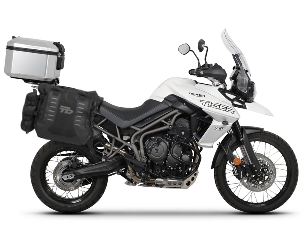 Complete set of SHAD TERRA TR40 adventure saddlebags and SHAD TERRA aluminium 48L topcase, including mounting kit SHAD TRIUMPH Tiger 800