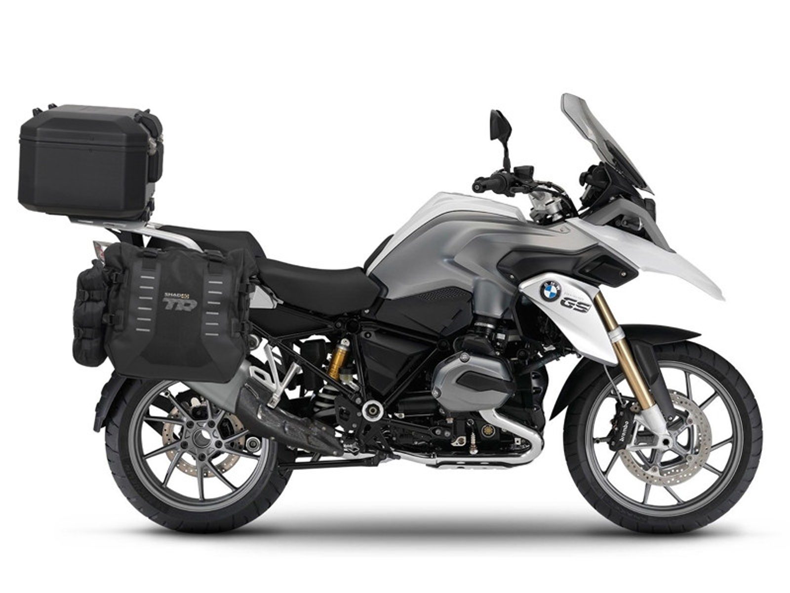 Complete set of SHAD TERRA TR40 adventure saddlebags and SHAD TERRA BLACK aluminium 55L topcase, including mounting kit SHAD BMW R 1200 GS Adventure/ R 1250 GS Adventure