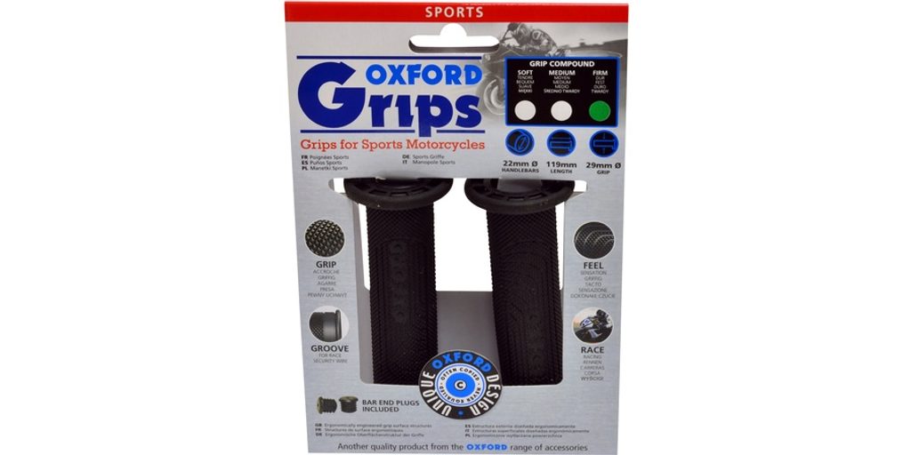 gripy Šport, OXFORD (čierna guma, tvrdosť gumy medium, na riadidlá o priemeru 22 mm, pár)