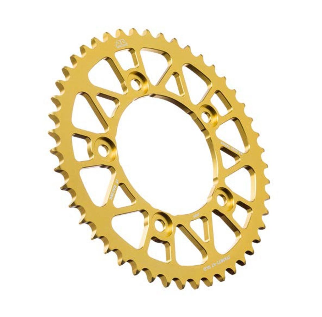 Racelite ultra lehká hliníková rozeta 7075T6, zlatý elox, samočistící drážky, 47 zubů, pro řetěz 525.