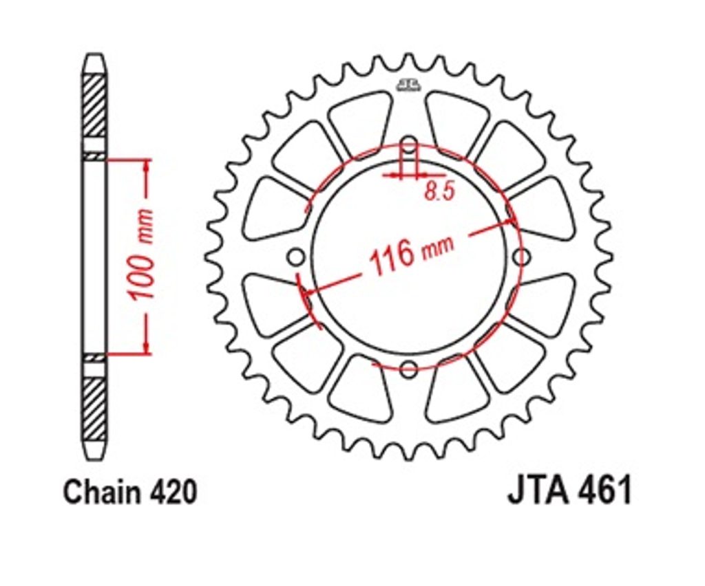 Hliníková reťazová rozeta JT JTA 461-53BLK 53)T, nt((420 čierna