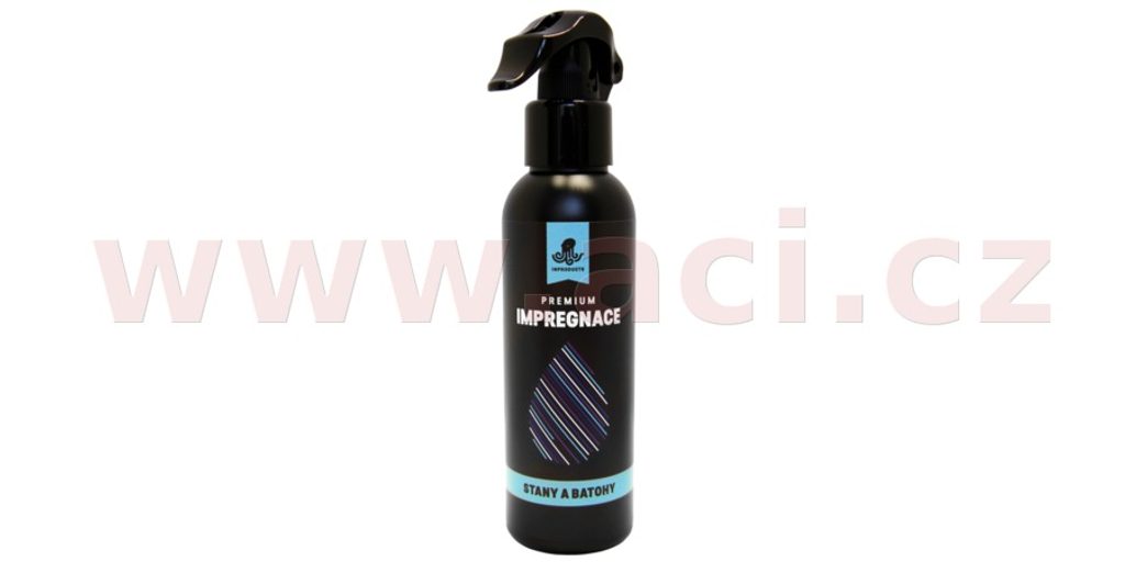 Vlastnosti: poskytuje ošetřeným povrchům silné hydrofobní vlastnosti a výrazně usnadňuje následné čištění. Dlouhotrvající ochranný efekt i v případě aktivního používání a opakovaného praní. Impregnace na stany a batohy funguje na vodní bázi; je bezbarvá, nezapáchá a je šetrná k životnímu prostředí. Rychle a jednoduše se nanáší.
