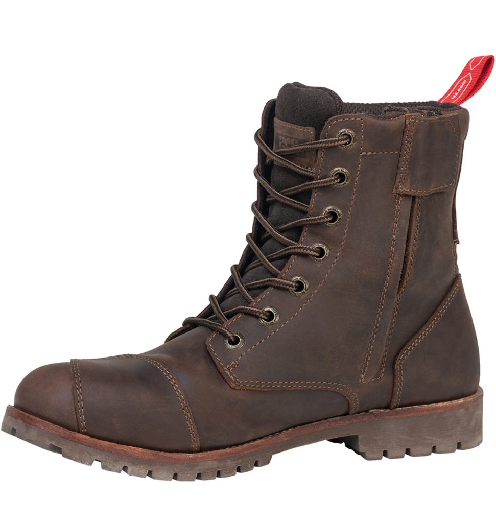 Tyto motocyklové boty vypadají jako klasické pracovní boty, mají ale vychytávky speciálně pro motorkáře. Chrániče všité v konstrukci, zesílená pata a podrážka odolná proti prodření.