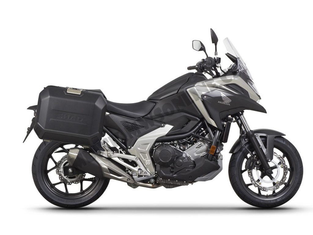 Kompletná sada bočných čiernych hliníkových kufrov SHAD TERRA BLACK, 47/47 litrov bočné kufre, vrátane montážnej sady SHAD HONDA NC 750 X 2021-