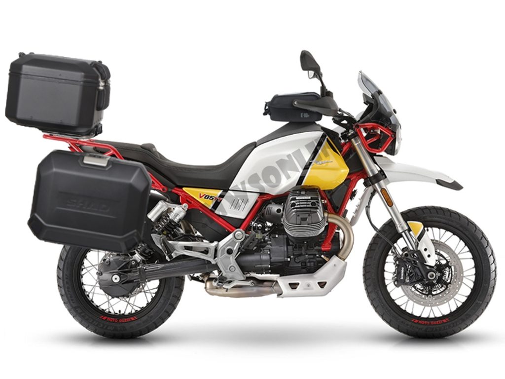 Kompletní sada černých hliníkových kufrů SHAD Terra obsahuje černý vrchní kufr TR48 s kapacitou 48L včetně plotny, pravý černý hliníkový kufr TR47 s kapacitou 47L a levý černý hliníkový kufr TR36 s kapacitou 36L kvůli umístění výfuku. Levý kufr tak nebude vyčnívat. Sada obsahuje vše, co potřebujete k montáži obou kufrů.