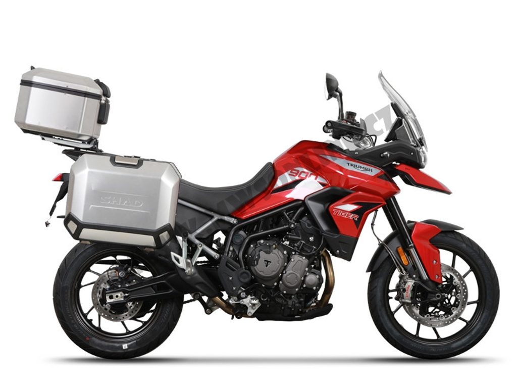 Kompletní sada hliníkových kufrů SHAD Terra obsahuje vrchní kufr TR48 s kapacitou 48L včetně plotny, levý hliníkový kufr TR47 s kapacitou 47L a pravý hliníkový kufr TR36 s kapacitou 36L kvůli umístění výfuku. Pravý kufr tak nebude vyčnívat. Sada obsahuje vše, co potřebujete k montáži obou kufrů.