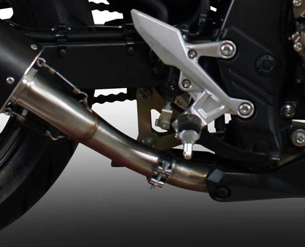 Homologovaný Homologated slip-on exhaust including removable db killer and link pipe