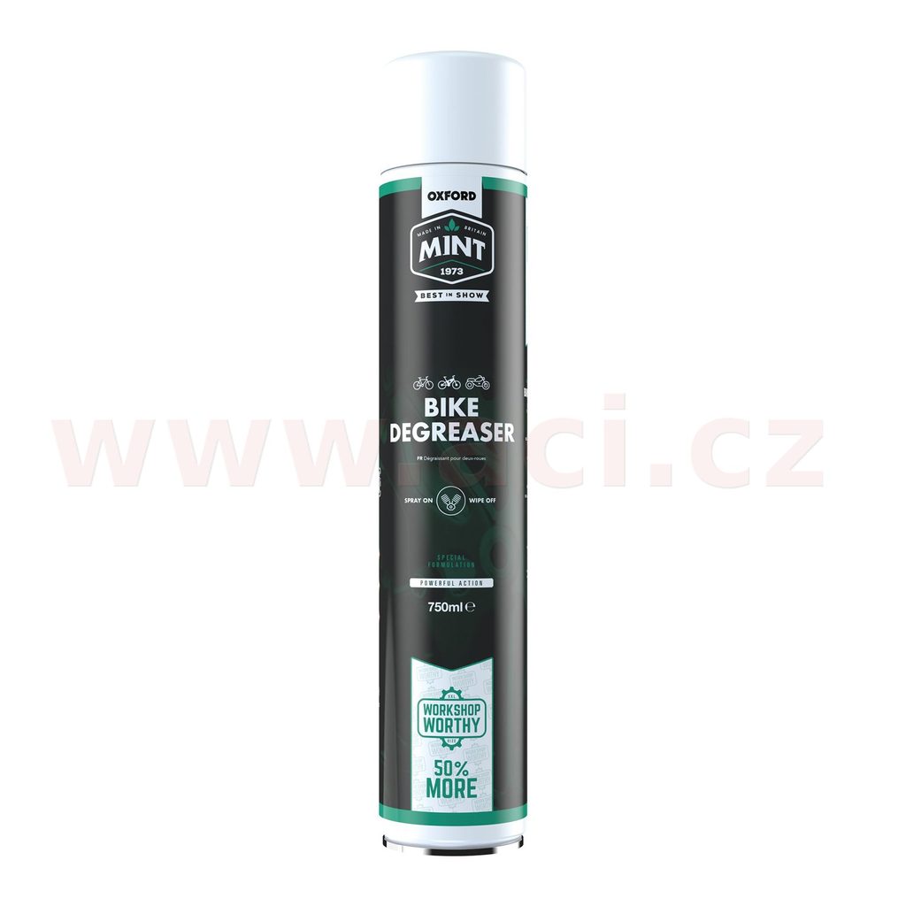 Složení odmašťovače je efektivní při odstraňovaní a vyplavování zbytků zaschlých a usazených tuků a olejů. Odmašťovač se při aplikaci z povrchu odpařuje pomaleji, aby efektivněji rozpustil co nejvíce nečistot. Pro co nejlepší fungování přípravku je tedy vhodné přípravek nanést a nechat působit několik minut před tím, než se setře. Emulzní látka ve složení odmašťovače dovoluje aby bylo možné povrch kompletně opláchnout šamponem. Produkt z řady položek moto/cyklo sortimentu značky MINT pro čištění. Aroma s vůní máty. Balení o objemu 750 ml pro dílenskou spotřebu.