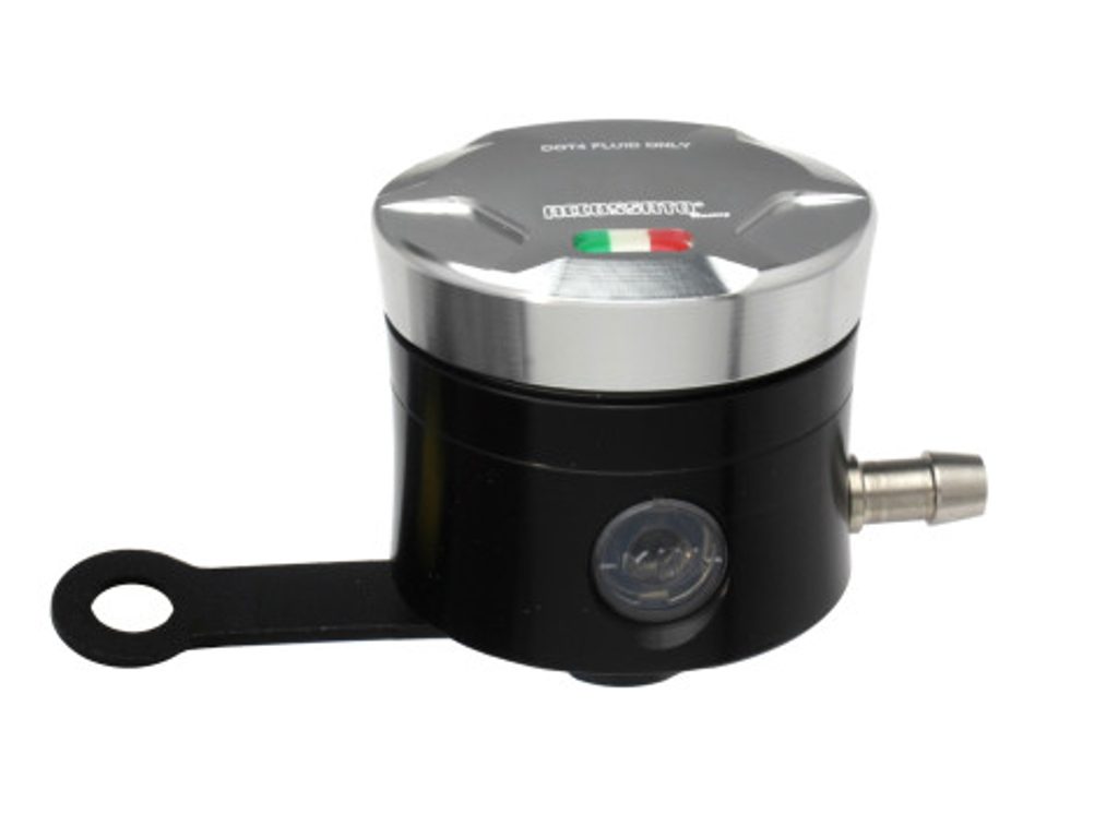 Accossato CNC-worked brake fluid reservoir, capacity of 25 cm3, horizontal oil spill. Straight braket provided. You can choose the colour match of the