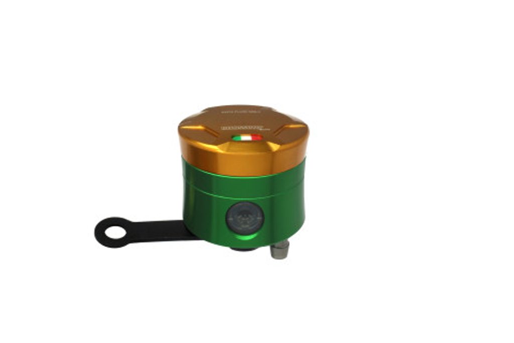 Accossato CNC-worked brake fluid reservoir, capacity of 25 cm3, vertical oil spill. Straight braket provided. You can choose the colour match of the c
