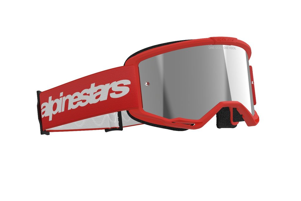 okuliare VISION 3 WORDMARK, ALPINESTARS (červená, zrkadlové strieborné plexi) 2025