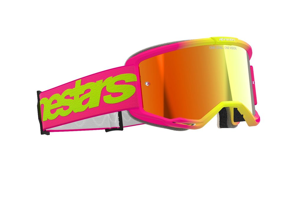 okuliare VISION 5 WORDMARK, ALPINESTARS (ružová/žltá fluo, zrkadlové červené plexi) 2025