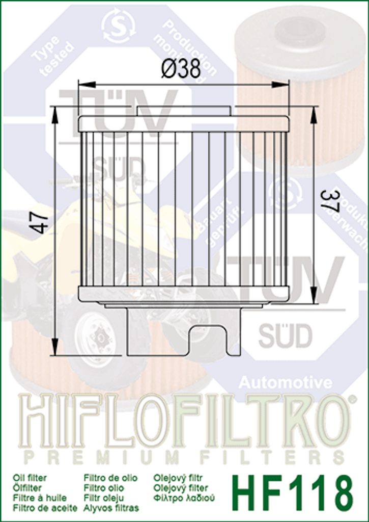 Olejové filtre HIFLOFILTRO sa môžu pýšiť prestížnou akreditáciou „TUV Approved". Je to prvýkrát, čo bolo toto schválenie pridelené akémukoľvek olejovému filtru v motocyklovom alebo automobilovom sektore. Náhrada originálneho dielu.