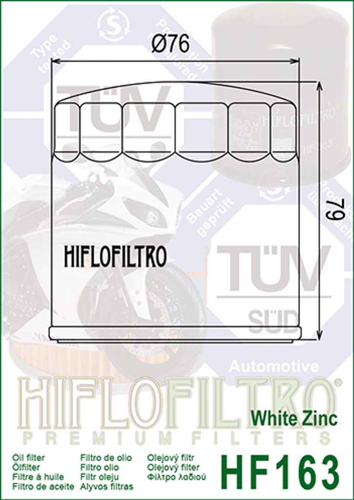 Olejové filtre HIFLOFILTRO sa môžu pýšiť prestížnou akreditáciou „TUV Approved". Je to prvýkrát, čo bolo toto schválenie pridelené akémukoľvek olejovému filtru v motocyklovom alebo automobilovom sektore. Náhrada originálneho dielu.