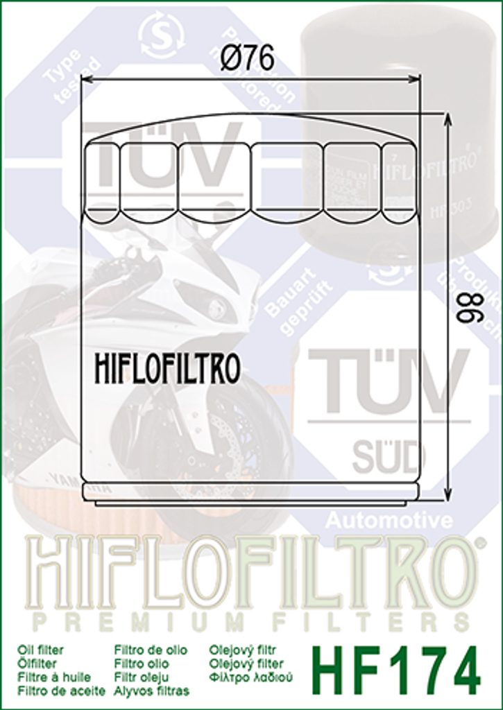 Olejové filtre HIFLOFILTRO sa môžu pýšiť prestížnou akreditáciou „TUV Approved". Je to prvýkrát, čo bolo toto schválenie pridelené akémukoľvek olejovému filtru v motocyklovom alebo automobilovom sektore. Náhrada originálneho dielu.