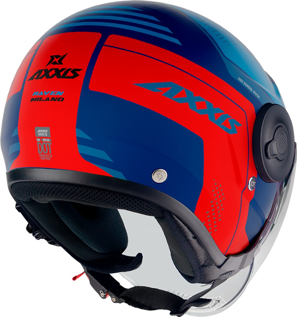 The AXXIS Raven Jet offers large ventilation systems at the front and rear, as well as an interior sun visor. Its bubble shape offers great protection for the whole head. The special graphic designs offer a good looking helmet with top quality materials.