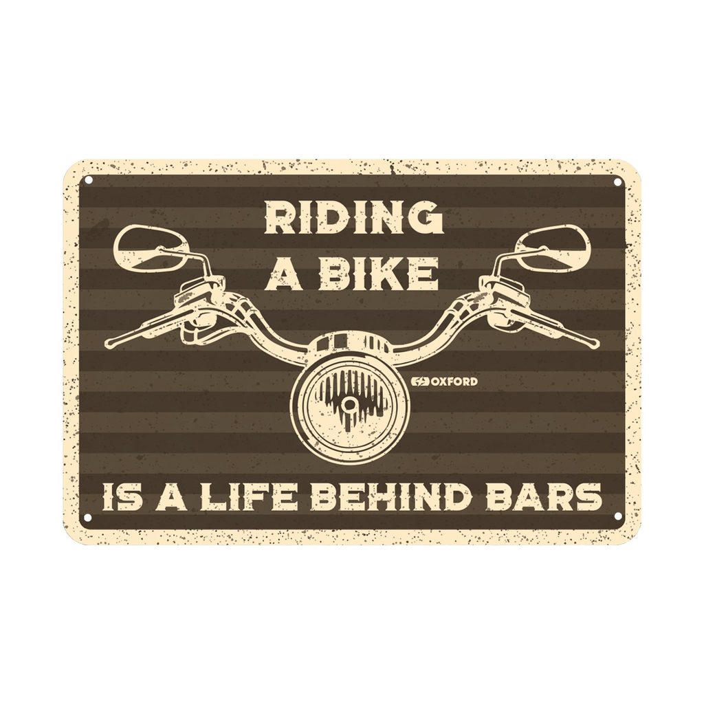 plechová ceduľa RIDING A BIKE, OXFORD (šedá/krémová, rozmer 30 x 20 cm)