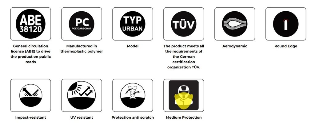 Tento nový štít od Puig kosmopolitní design, vyvinutý speciálně pro městské použití, a poskytuje ochranu proti větru a nepříznivému počasí při současném zlepšení aerodynamických vlastností.