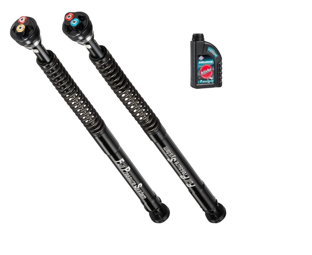Pressurized cartdrige adjustable: spring preload, rebound, compression + 1 Lt oil / L +17mm