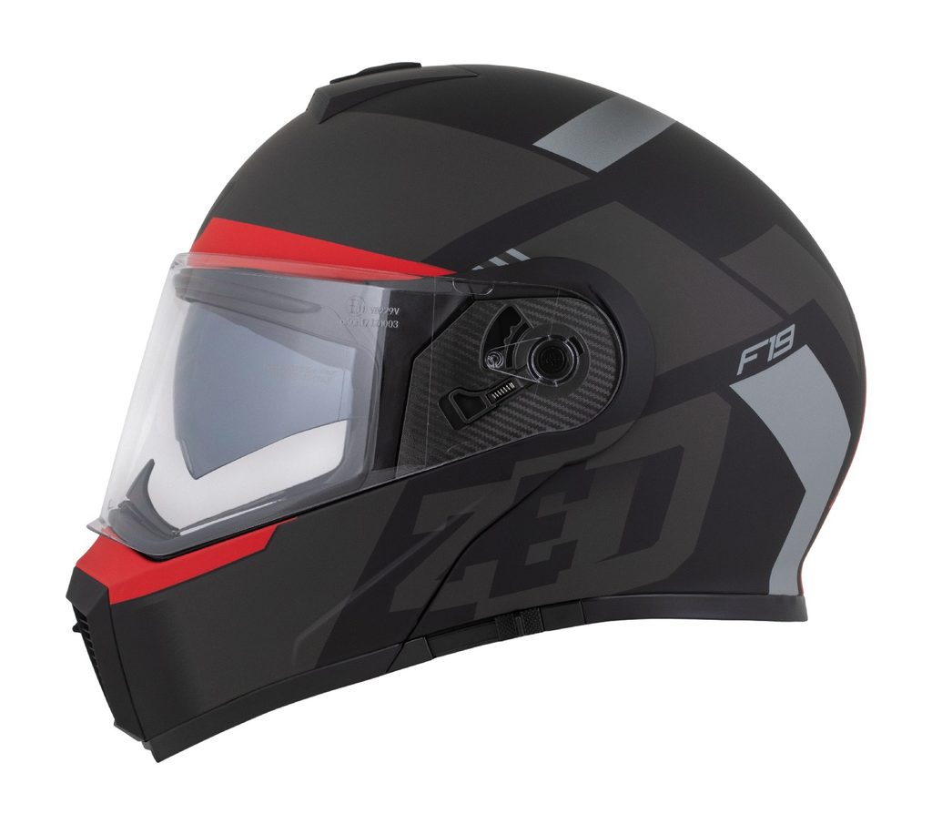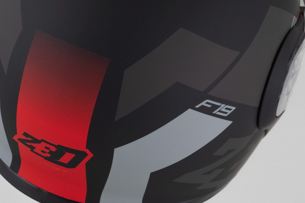 prilba F19, ZED (čierna matná/červená fluo/šedá) 2025