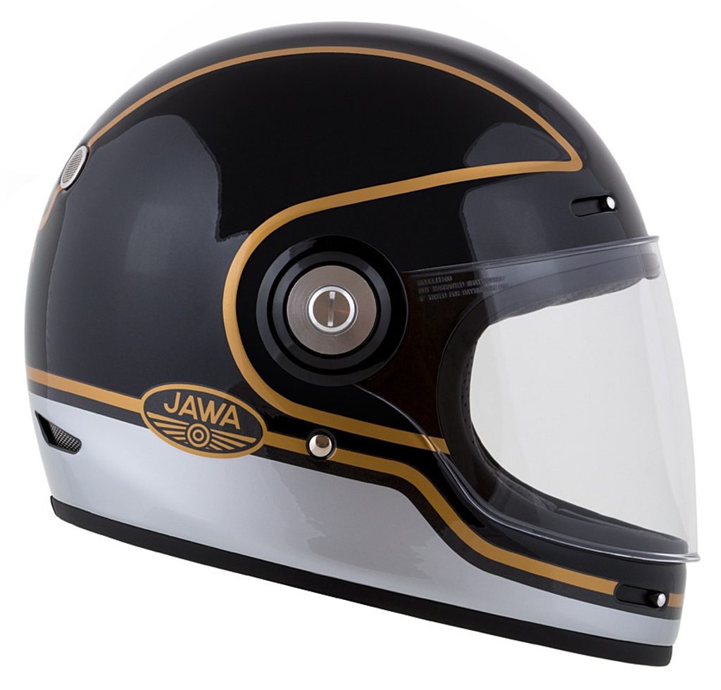 přilba Fibre je integrální přilba se sklolaminátovou skořepinou, bezpečnostními standardy moderních přileb a vzhledem cíleným na uživatele veteránů nebo kategorie neo retro a moderních klasických motocyklů. Grafika z edice ve spolupráci s výrobcem motocyklů JAWA.