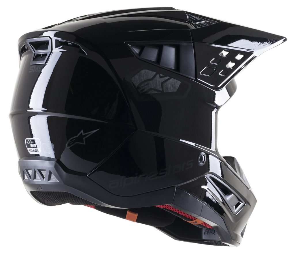 nový model přilby S-M5 je výsledkem více než 5-ti let intenzivního zkoumání, vývoje a testování. Během vývoje byl prozkoumán každý možný aspekt pro zhotovení přilby, která bude bezpečná a promyšleně navržená, tak aby poskytla kombinaci optimální ochrany a komfortu. Lehká skořepina představuje vstřikovaný termoplast ze speciální směsi polymeru, která je navržena a optimalizována pro vstřikování v různých tloušťkách na potřebných místech. Díky tomu je dosaženo optimální kombinace ochrany proti rázovým silám na potřebných plochách za kombinace s dobrým poměrem hmotnosti přilby. Vícepanelové jádro přilby s EPS panely o 5-ti různých hustotách zajišťuje správnou hustotu EPS v konkrétní části přilby. Mezi další, neméně důležité přednosti patří konstrukce polstrování ve spodních/bočních partiích přilby v oblasti límce, které zajišťuje efektivní roznesení sil přenášených na horní oblast klíční kosti. Přilba obsahuje kšilt s patentovaným mechanismem rychloodepínání kšiltu v případě pádu na kšilt stejně jako u vyšších modelů z nabídky terénních přileb ALPINESTARS