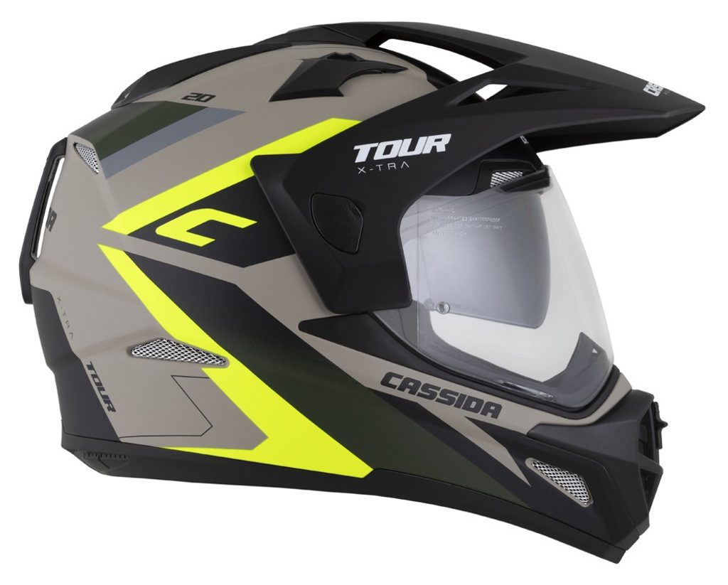 prilba Tour 2.0 X-tra, CASSIDA (piesková matná/žlutá fluo/zelená/černá, plexi s prípravou pre Pinlock) 2025