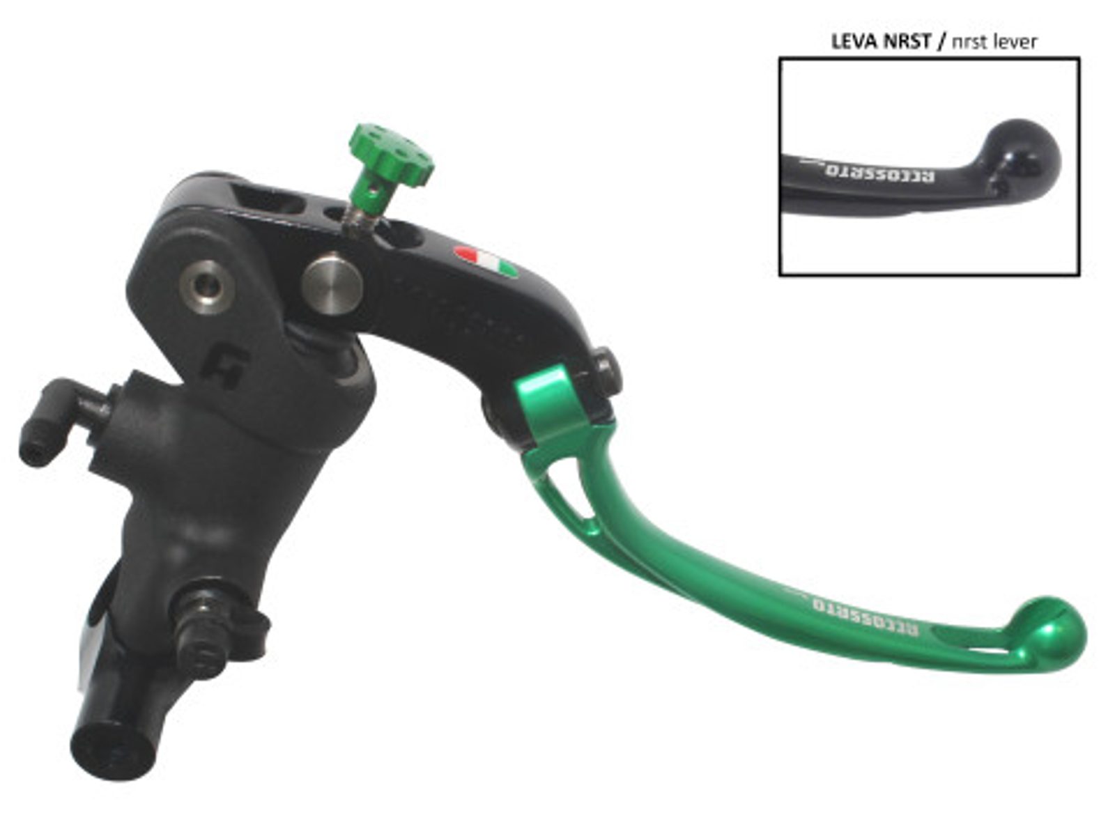 Radial brake master cylinder ACCOSSATO 19 x 18 with folding lever,green