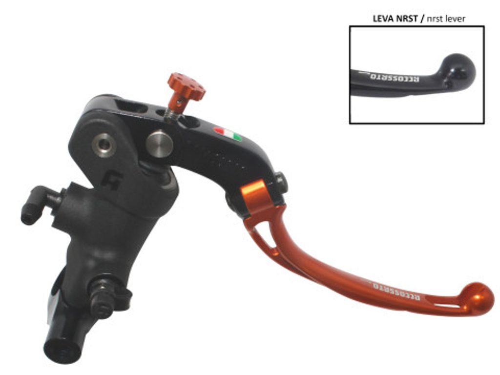 Accossato Radial Brake Master Cylinder For Motorcycles with 25,4mm diameter handlebarIn Forged Aluminium Black Anodyzing 19 x 19. The lever is colourf