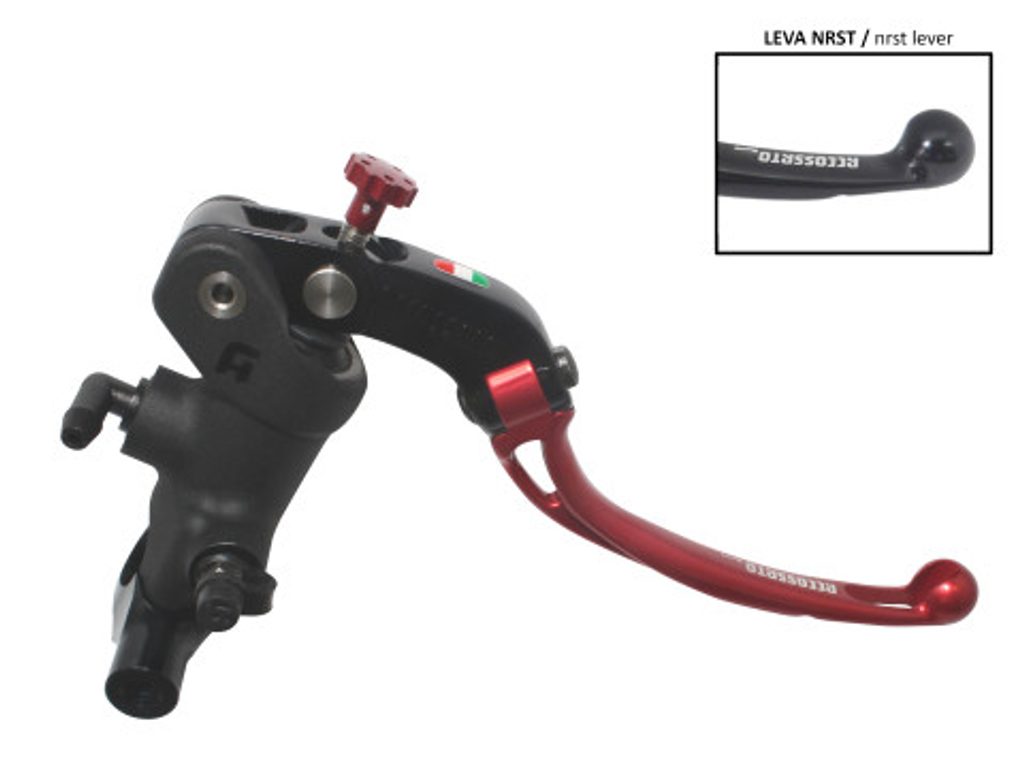 Accossato Radial Brake Master Cylinder For Motorcycles with 25,4mm diameter handlebarIn Forged Aluminium Black Anodyzing 19 x 19. The lever is colourf