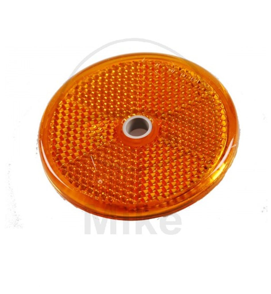 Žlutá kulatá odrazka, průměr 60mm s plastovým držákem a dírou na šroub