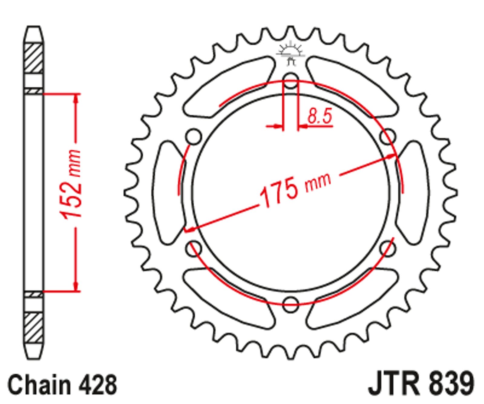 Reťazová rozeta JT JTR 839-57 57 zubov,428