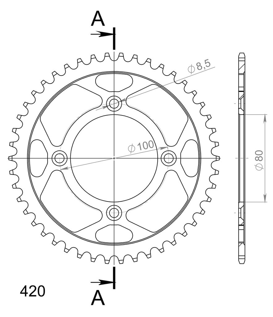 Pevnější zuby = vyšší životnost řetězové sady až o 10%. Rozeta 46z, řetěz 420.