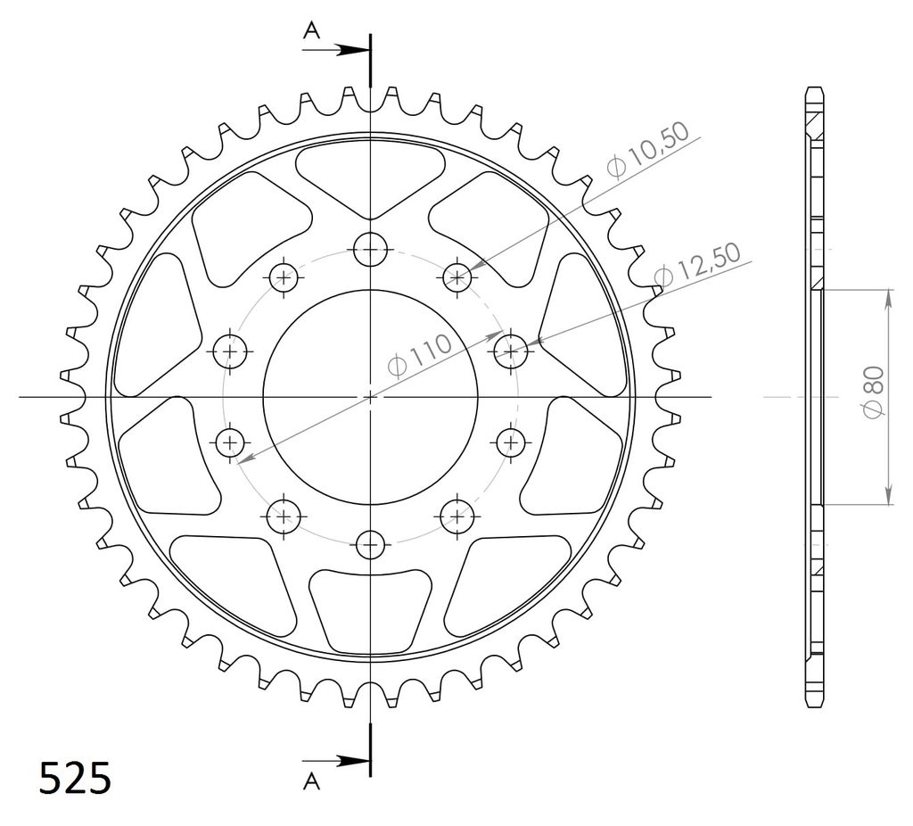 Pevnější zuby = vyšší životnost řetězové sady až o 10%. Rozeta 44z, řetěz 525.