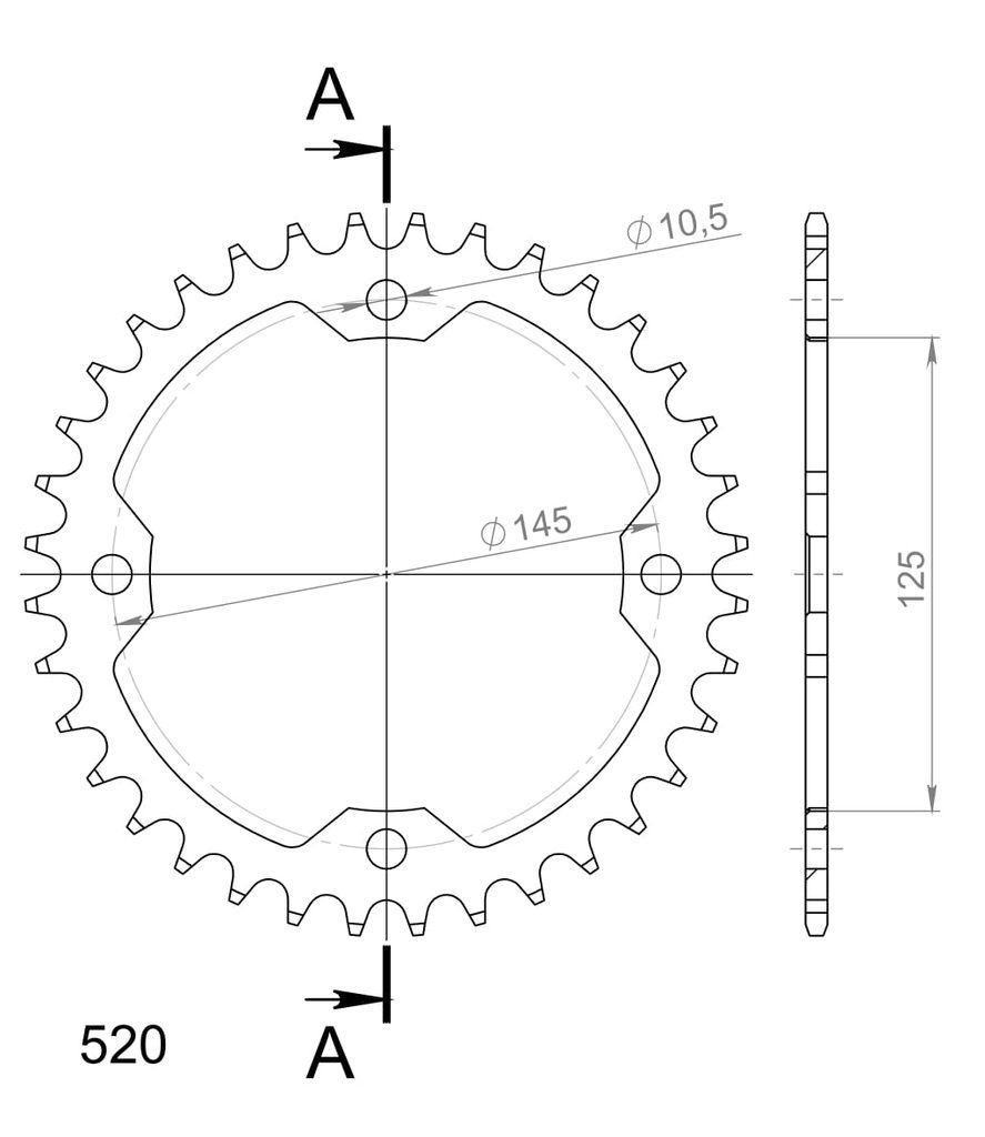 Pevnější zuby = vyšší životnost řetězové sady až o 10%. Rozeta 36z, řetěz 520.