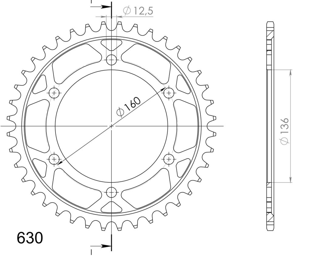Pevnější zuby = vyšší životnost řetězové sady až o 10%. Rozeta 40z, řetěz 630.