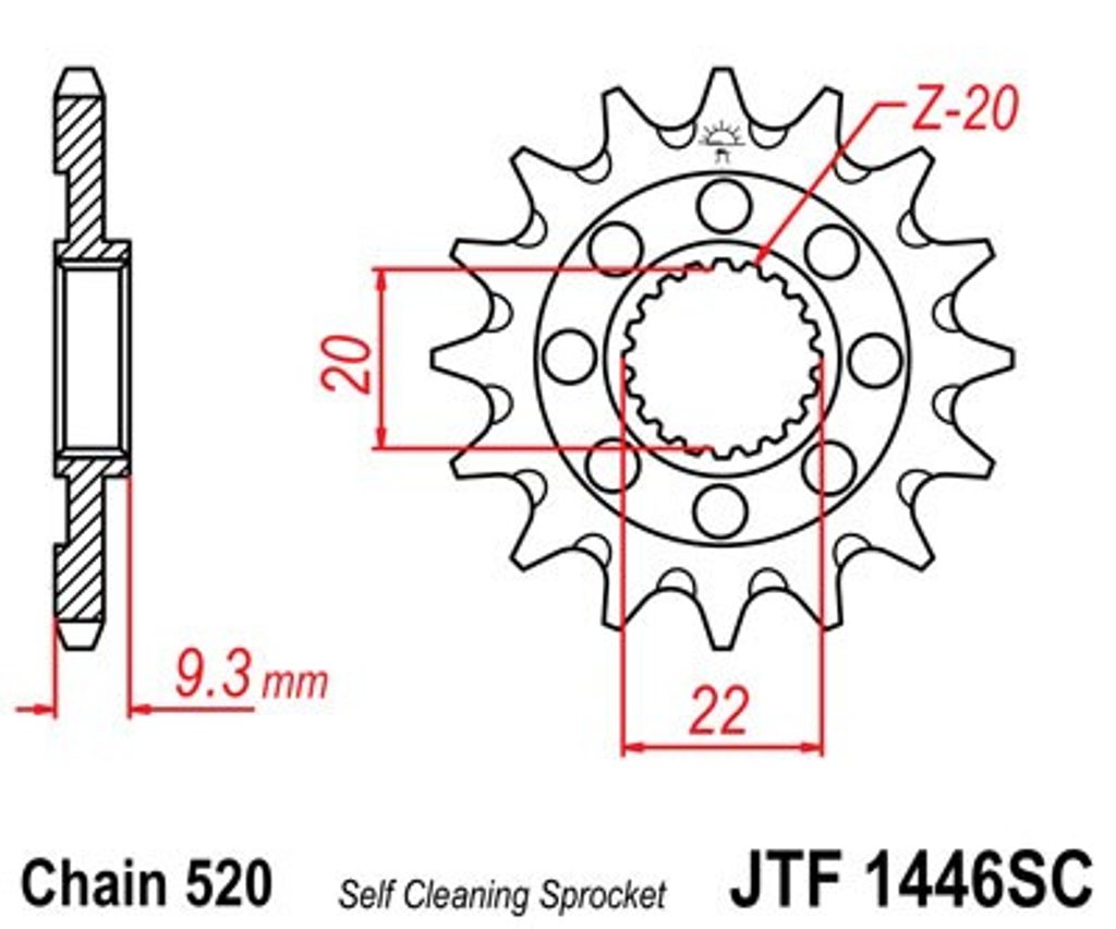 Reťazové koliečko JT JTF 1446-13SC 13 zubov,520 Self Cleaning Lightweight
